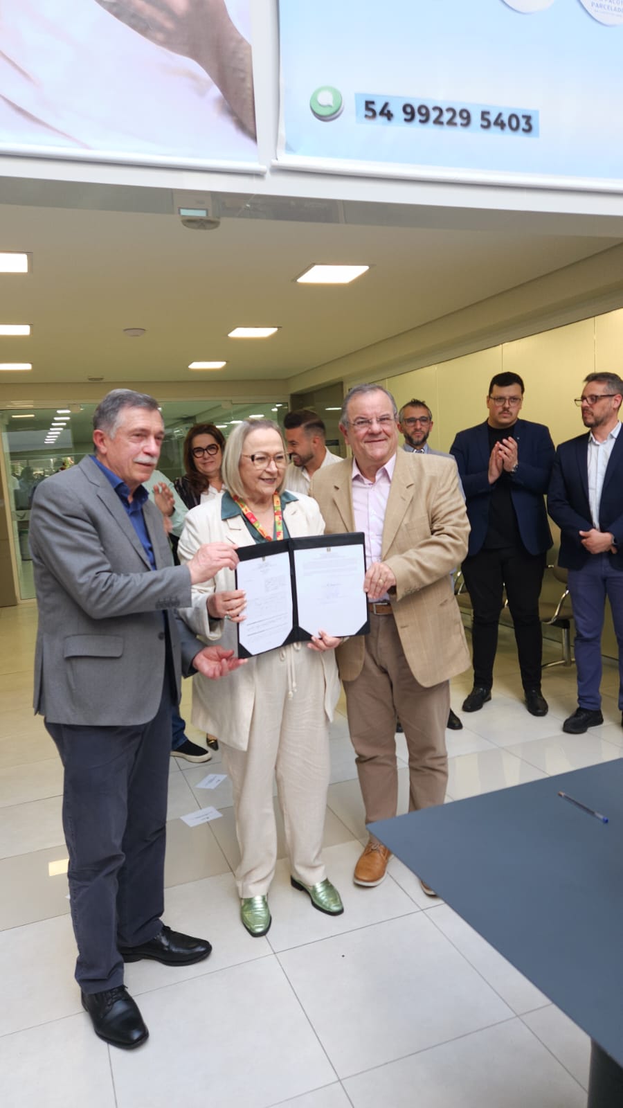 A solenidade contou com a presença da diretora executiva do Hospital, Cleciane Doncatto Simsen, da secretária estadual da Saúde, Arita Bergmann, do presidente da Associação Científica e Cultural Virvi Ramos, Nelson Darrigo, do prefeito Adiló Didomenico, e do secretário municipal da Saúde, Rafael Bueno. Também estiveram presentes vereadores representando o Legislativo Municipal, reforçando a importância desta conquista coletiva para a saúde pública da cidade.